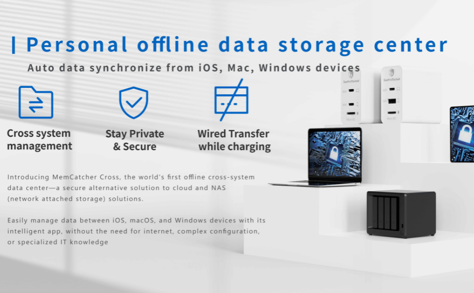 - Cross-System Data Storage Center: Combines fast charging, data backup, and encryption in one device, providing a secure and user-friendly alternative to cloud and NAS storage.