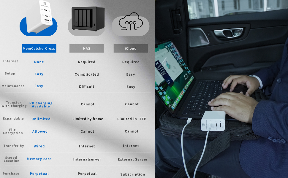 - All-in-One Charging & Storage Solution: Ideal for users with iPhones , MacBooks and laptops who want a simplified lifestyle with charging, storage, and data security in a single device.