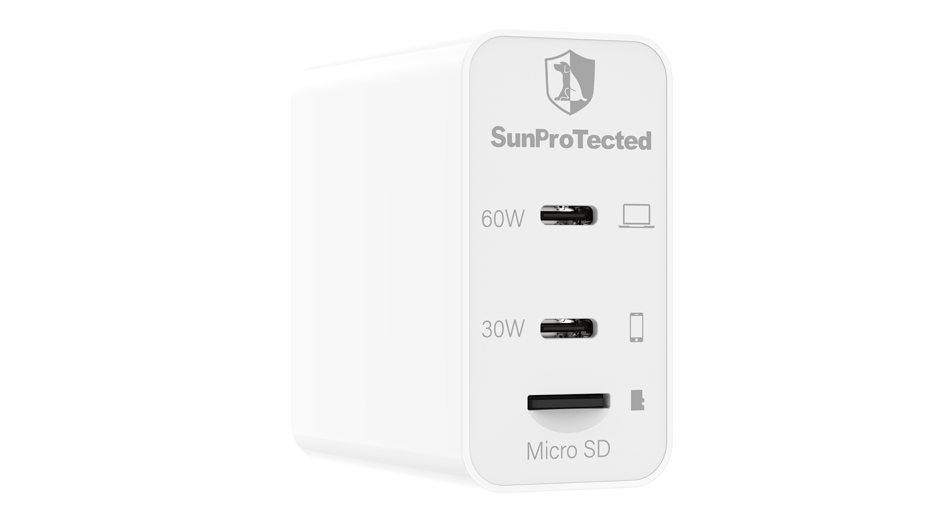 MemCatcher Cross 65W 2USB-C GaN + PD Smart Storage Wall Charger Up to 2TB Storage via MicroSD, with Auto-Backup for iPhone, iPad, MacBook, Laptop/PC (MicroSD Card not icluded)